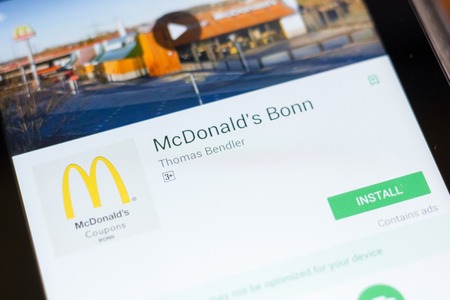 Ryazan, Russia - June 24, 2018: McDonalds Bonn mobile app on the display of tablet PC