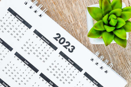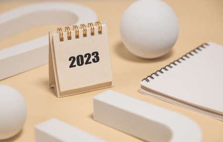 Desktop calendar for 2023 on a beige background. goals and plans on next year.