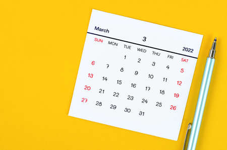 April 3rd. Day 3 of April month, calendar on table with yellow background. Spring time, empty space for text.