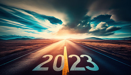 Happy new year 2023. modern design concept highway transport for creative and designer making artwork for cards, invitations, banner, poster, calendar and website celebration decoration. Generative AI