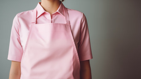 Young woman in apron with pink apron. Portrait of young woman.