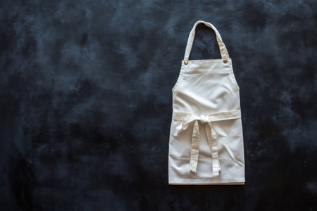 White chef apron cleanly folded and placed on a dark, textured background, symbolizing cooking and professional kitchen work