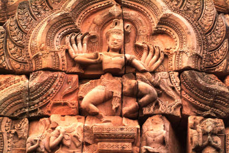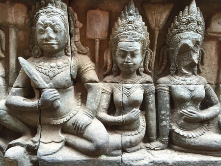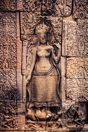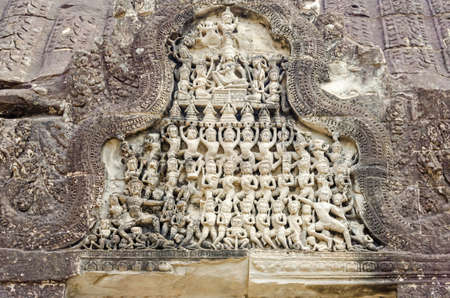 Bas relief at ancient buddhist khmer temple near Siem Reap, Cambodia