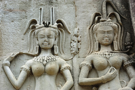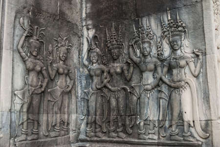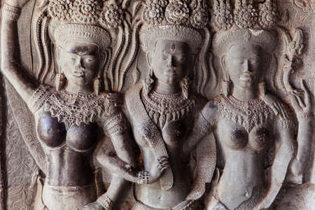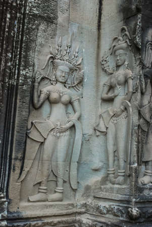 Asparas (Devata) bas-relief on the wall of Angkor Wat Temple, Siem Reap, Cambodia.