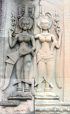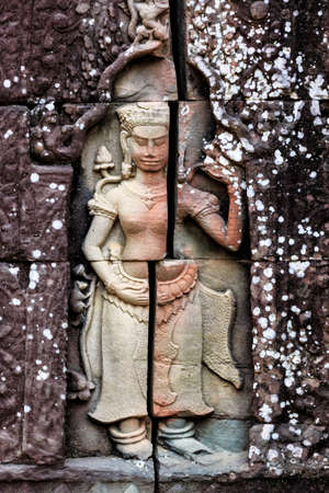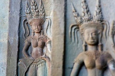 Statuette of woman on the wall in Anghor Wat temple in Cambodia