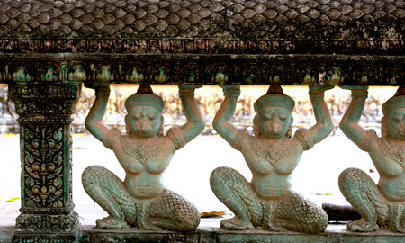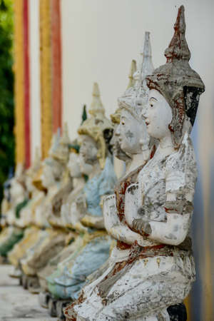 The row of thai art sculpture in the temple
