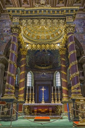 ROME, ITALY - SEPTEMBER 24, 2018: Detail of interior of church of Santa Maria Maggiore in Rome, Italy. It is a Papal major basilica and the largest Catholic Marian church in Rome