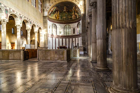 Ravenna, Italy - May 12, 2013: Rich decorated with mosaic walls and ceiling of the Basilica di San Vitale in Ravenna, Italy. Rare example of early Christian Byzantine art in Europe.
