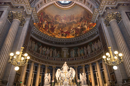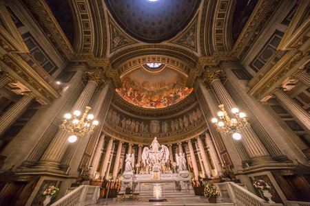 Paris, France - 24.04.2019: Interior of Pantheon, in the Latin Quarter in Paris in France