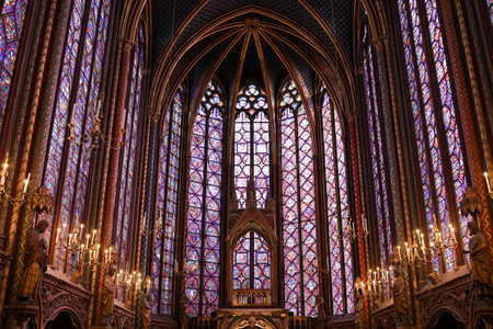 PARIS, FRANCE - OCTOBER 26, 2022: Interior View of Sainte-Chapelle, a Gothic Style Royal Chapel in the Centre of Paris.