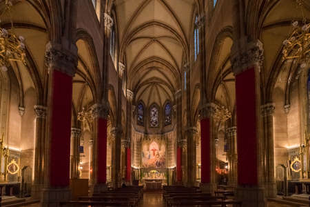 BARCELONA - February 2019: Interior of the crypt of the Expiatory Church of the Sacred Heart of Jesus, located on the summit of Mount Tibidabo in Barcelona, Catalonia, Spain