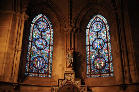 Cathedral interior with beautiful strain glass.