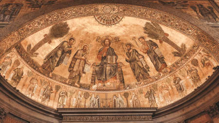 The Papal Basilica of St. Paul outside the walls, Wonderful mosaic with Christ and the apostles in Rome, Italy