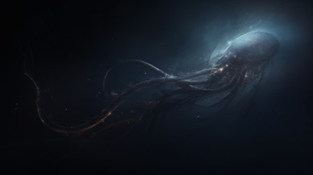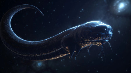 An AI generated illustration of a mysterious creature floating in the vastness of space, illuminated by a myriad of stars