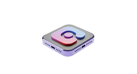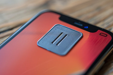Close-up view of a smartphone showcasing a sleek blue icon, reflecting modern technology aesthetics, set on a textured surface for artistic appeal.