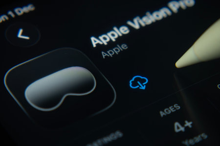 Dhaka, Bangladesh- 01 Dec 2025: A close-up of the Apple Vision Pro app icon in the App Store on an iPad screen.