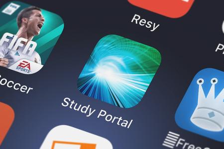 London, United Kingdom - September 29, 2018: Close-up shot of the Study Portal mobile app from Microsoft Corporation.