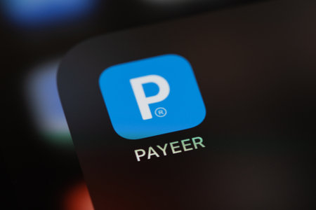 Payeer mobile app on the screen smartphone iPhone. Payeer is a web wallet designed to work with digital currencies and fiat currencies. Batumi, Georgia - March 7, 2022