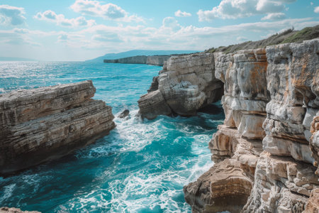 Beautiful greek coast cyprus seaside shore cliffs hiking nature vacation summer mediterranean island tourism waves splashes sunny holiday spain bay rocky beautiful destination