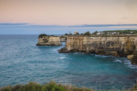 Rocky stacks of Santo Andrea on the coast of Salento in Puglia in Italy