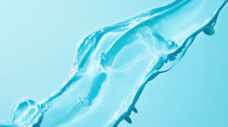 An artistic abstract image showcasing a flowing intricately, wave pattern of transparent water with highlights and floating bubbles, illustrating purity, motion, and serenity in a modern design context. AI generated image