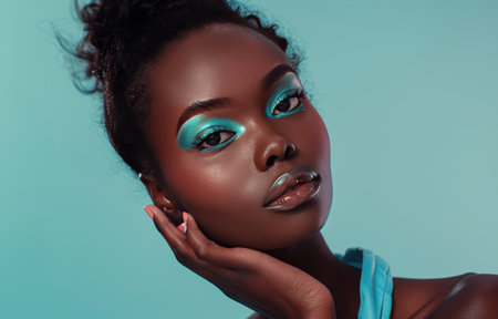 Modern and contemporary black female model with vibrant colors beauty portrait.