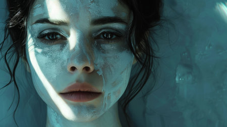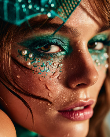 Enchanting Aquatic Beauty Captivating Portrait of a Woman with Glittering Makeup and Ocean Inspired Tones Ethereal Dreamy and Surreal Digital Composite Image