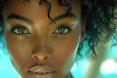 Gorgeous african woman with exquisite water droplets adorning her captivating close-up portrait