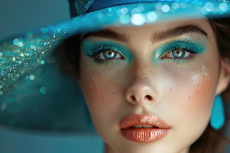 Digital artwork of female beauty with blue eye make up portrait, high quality, high resolution