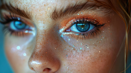 Close-Up Portrait of Woman With Blue Eyes and Glitter Makeup