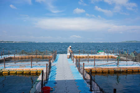 The round fish farm in open seawater