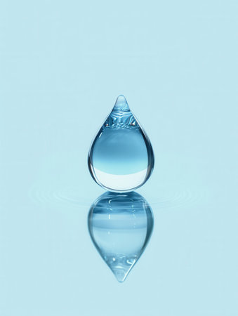 A sleek water drop design showcases a clear reflection with calming blue hues, embodying a modern and minimalist branding concept.