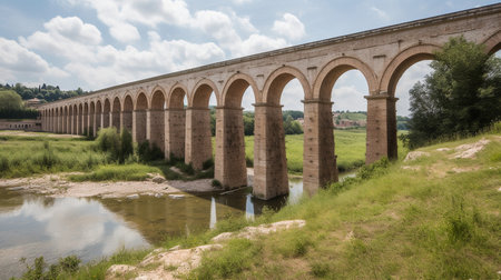 Grand Roman aqueduct stretching across picturesque landscape