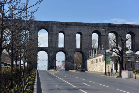 ISTANBUL, TURKEY - 17,03,2018 The Valens Aqueduct is a Roman aqueduct which was the major water-providing system of Constantinopole, modern Istanbul,