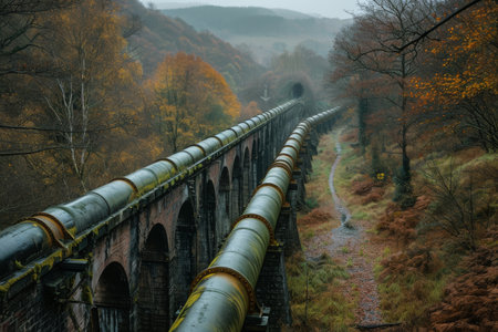 An ancient Roman aqueduct, a marvel of historical engineering, is reimagined with a futuristic twist.