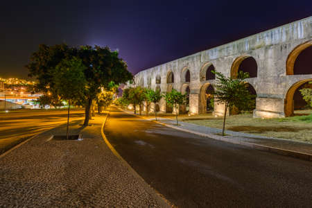 Lisbon, Portugal - January 24, 2020: Ãguas Livres Aqueduct (Portuguese: Aqueduto das Ãguas Livres), a historic aqueduct from the 18th Century, as seen from the highway