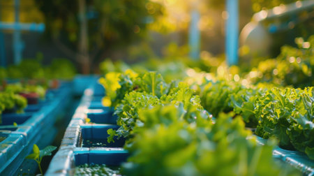 Out of focus view of a selfsustaining farm using the power of aquaponics to produce fresh food