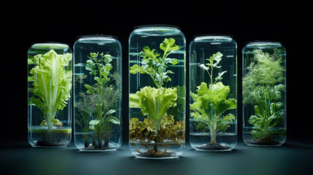 Explore the beauty of hydroponic gardening with glass containers showcasing vibrant plants and vegetables. Ideal for modern eco-friendly living.