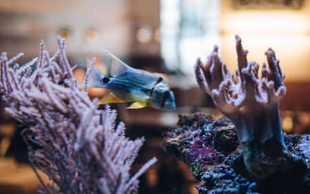 Aquarium with tropical fishes and corals. Aquarium with colorful fish.