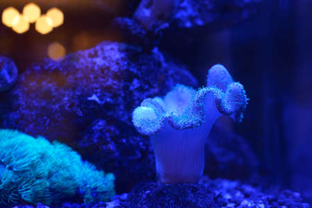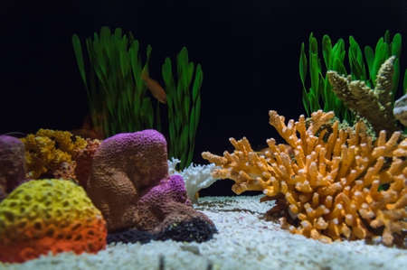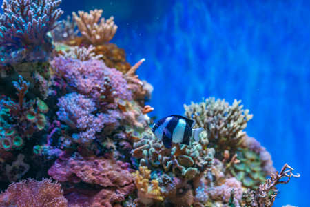 Underwater world aquarium with corals and tropical fish. Aquarium background