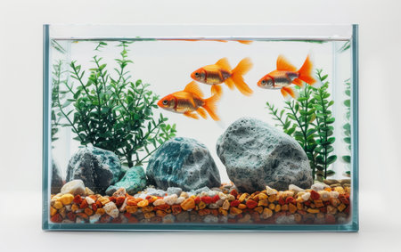 A minimalist fish tank with clear water and a few elegant fish swimming.