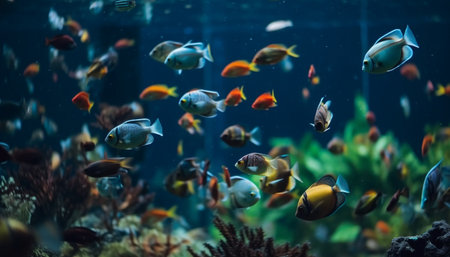 Colorful aquatic collection swimming in transparent reef environment below water generated by artificial intelligence