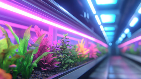 In a state-of-the-art laboratory, rows of meticulously maintained aquariums glow under advanced LED lighting. Each tank is a self-contained ecosystem, a testament to modern aquaculture and biological research, where aquatic plants thrive in a perfectly controlled environment.