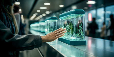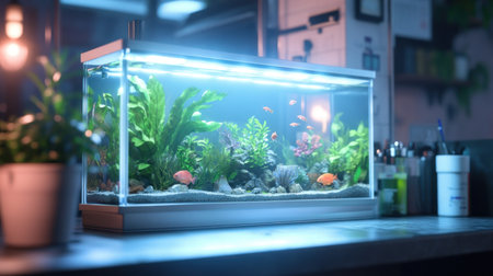 wall-mounted aquarium with auto lighting system, created with generative ai
