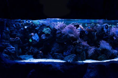 Aquarium with tropical fishes and corals. Aquarium with colorful fish.