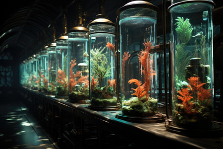 A captivating fish tank with a floating glass dome allowing viewers to admire the beauty of deepsea creatures from abov