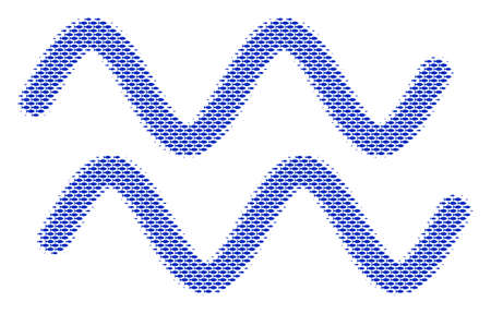 Fish sinusoid waves halftone mosaic. Vector fish pictograms are united into sinusoid waves composition. Nautical design concept.