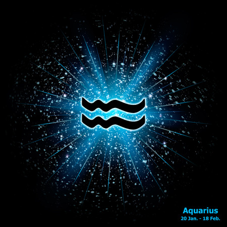 Zodiac sign Aquarius on cosmic explosion background. Vector illustration