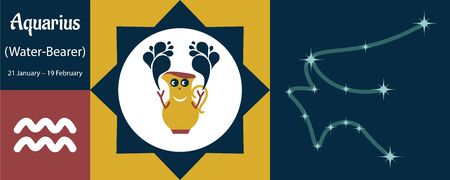 Aquarius zodiac sign. Horoscope. Illustration for souvenirs and social networks