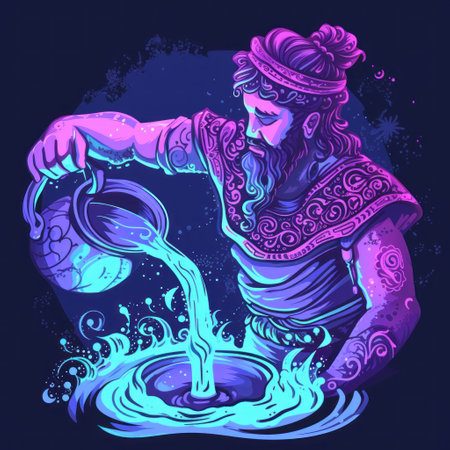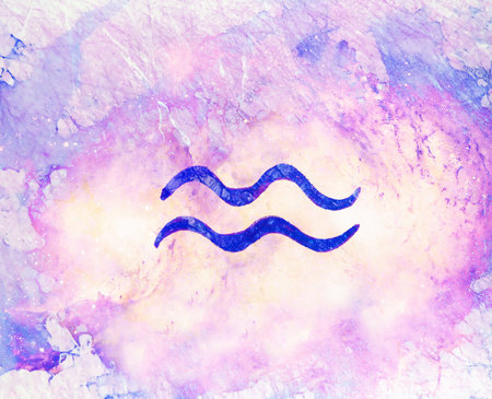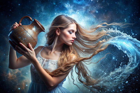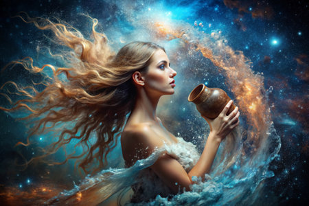 Mystical Aquarius sign vividly captured, blending elements of water and stardust, conveying the essence of innovation and creativity. Perfect for astrology enthusiasts and cosmic art lovers. Generated A.I.